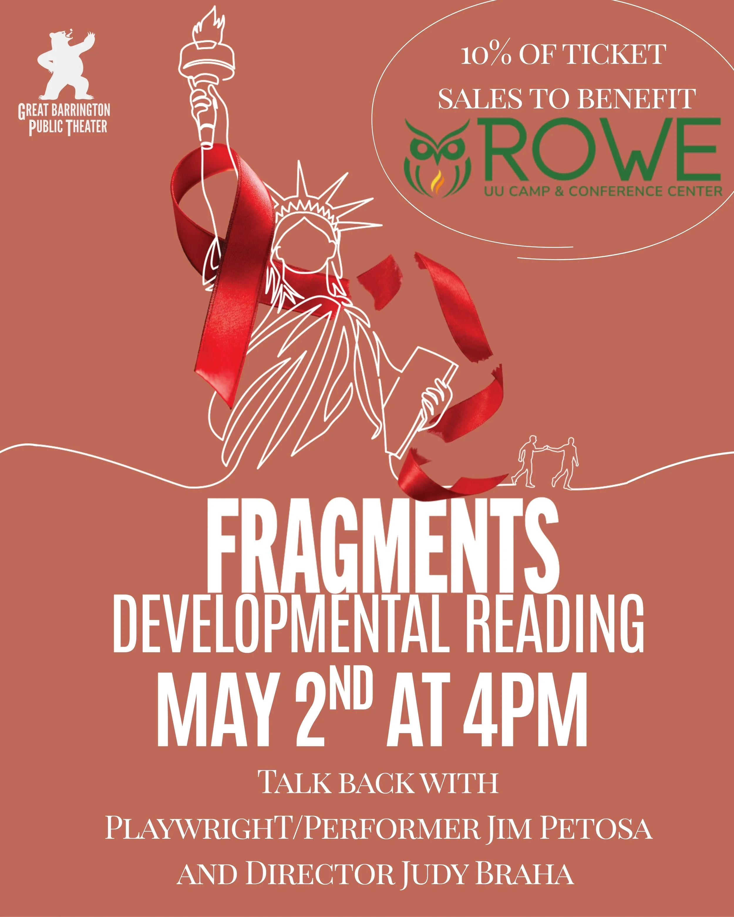 Join us for a developmental reading before the final rehearsals and performances of the first show of our 2026 Season, Fragments. Working with Jim Petosa to explore this new script, we will spend a few days in process in late April that will culminate in a sneak peek of the piece, a developmental reading on May 2. We are very proud to announce that 10% of our ticket sales for the May 2nd Developmental Reading of Fragments will be going to the Rowe Center. The proceeds will specifically go towards scholarships for the POZitive Impact Retreat for Men Living with or Deeply Affected by HIV, helping to make this retreat accessible to those who may not have the means to attend and participate in this important weekend.